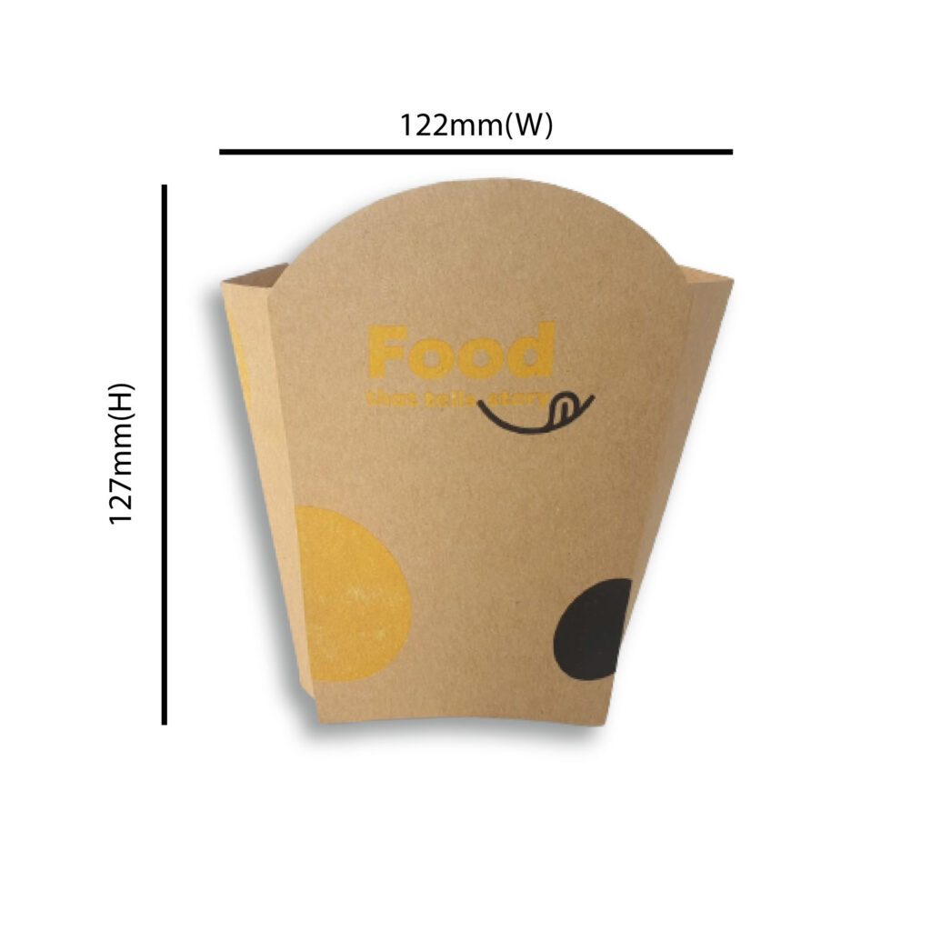 The environmentally friendly chip scoop. Ideal for hot foods such as chips. The recycled kraft paper material makes these boxes highly sustainable