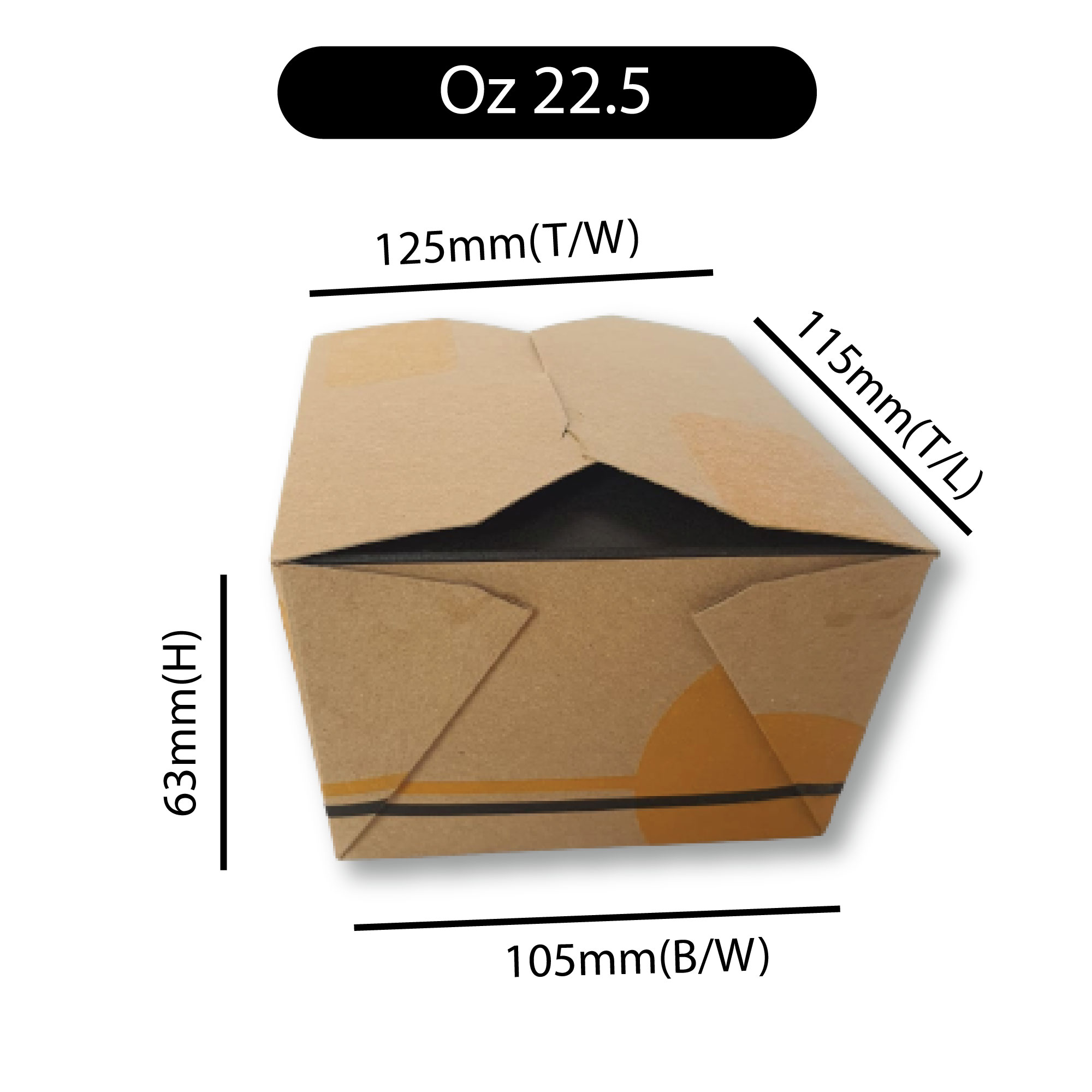 - Dimensions in mm (125 T/W ,115 T/L, 105 B/W ,88 B/L , 63 H)